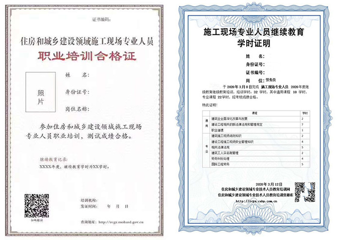 施工現場專業人員繼續教育(學時證明)及電子版證書