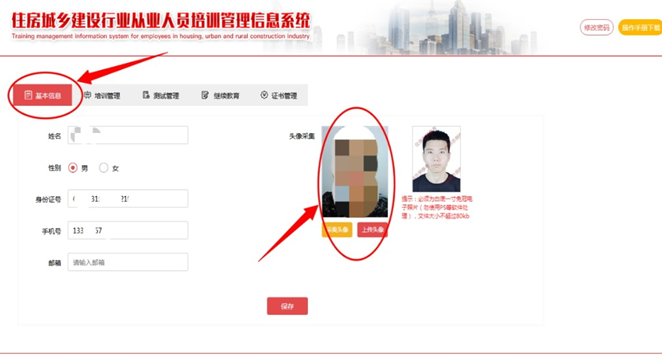 注冊成功進(jìn)入系統(tǒng)后,請完善個人信息,上傳本人照片( 必須為本人近期一寸白底免冠照片, 文件大小不超過80KB),請確保本人照片無誤,一經(jīng)上傳不可修改。在【證 書管理中】可查詢已經(jīng)由建設(shè)行業(yè)行政主管部門上傳的有效證書,完成繼續(xù)教育后即可換發(fā)電子培訓(xùn)合格證。